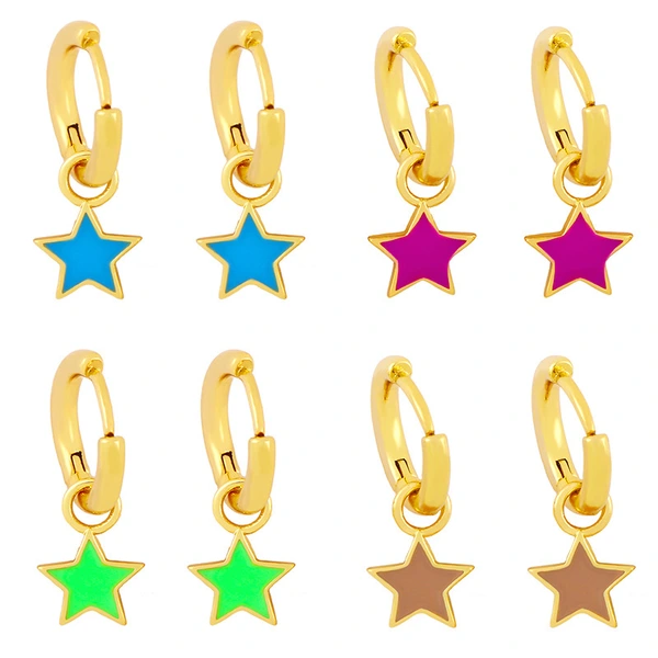 brincos novos brincos estrela de cinco pontas brincos femininos temperamento europeu e americano brincos simples gota de óleo erx44