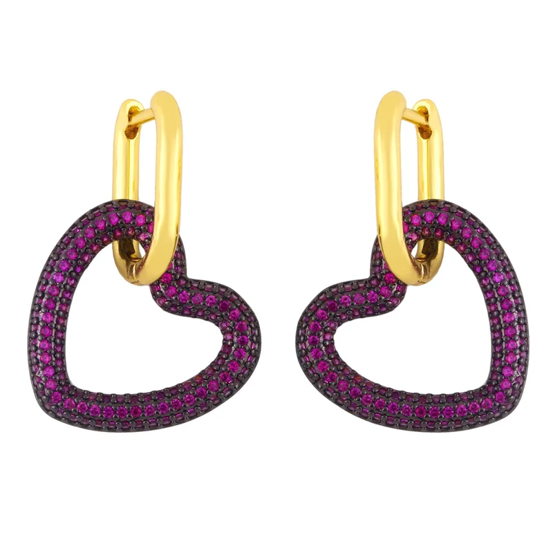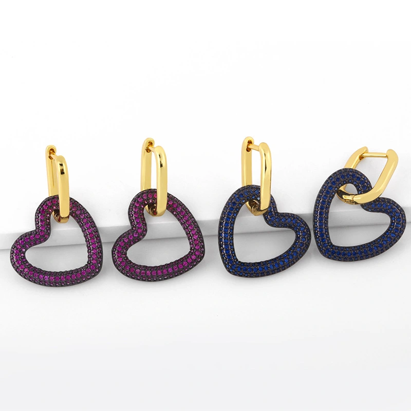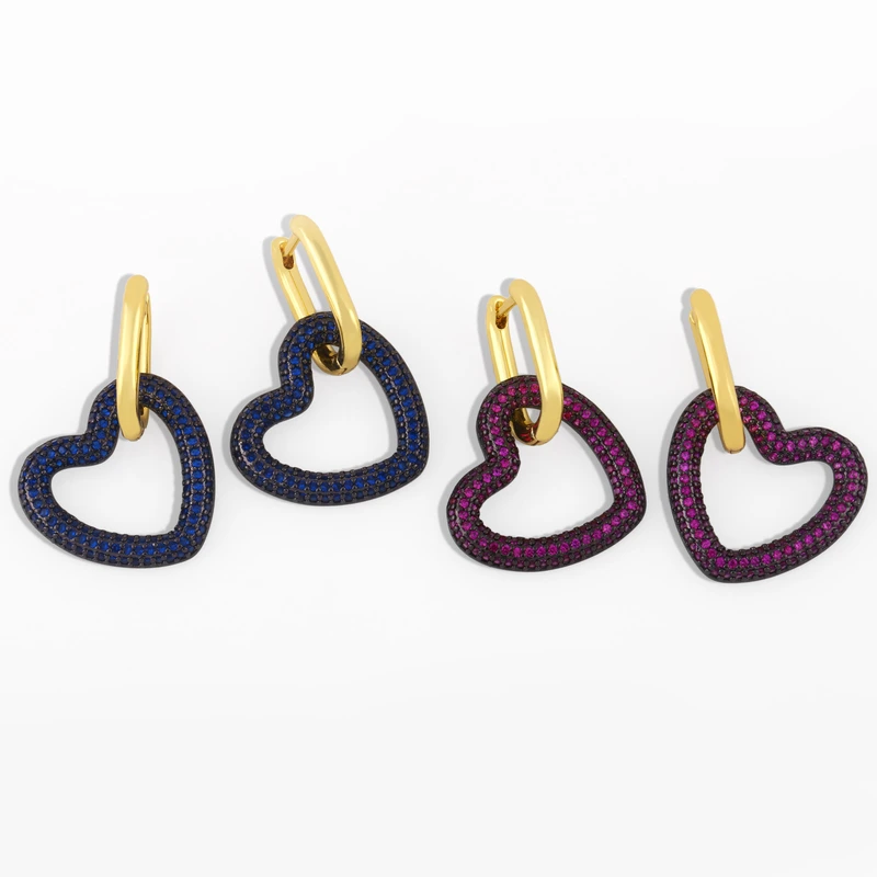 brincos de coração de zircónia quebrada estilo cool moda leve design de luxo brincos personalidade temperamento brincos em forma de coração