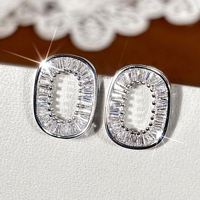 Brincos coreanos elegantes de temperamento antigo, misture e combine brincos ovais com microincrustações de zircónias brilhantes, vendas diretas da fábrica