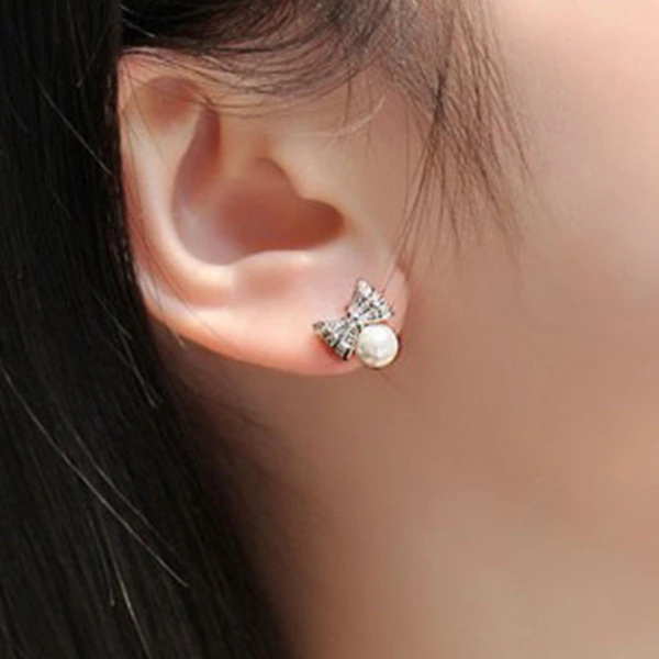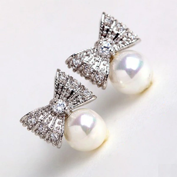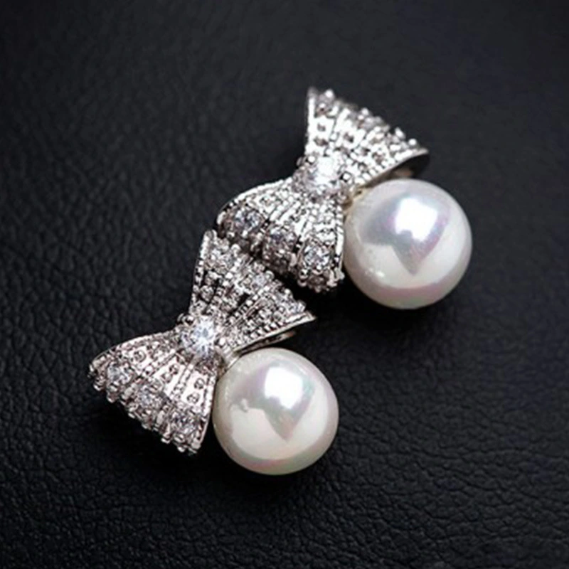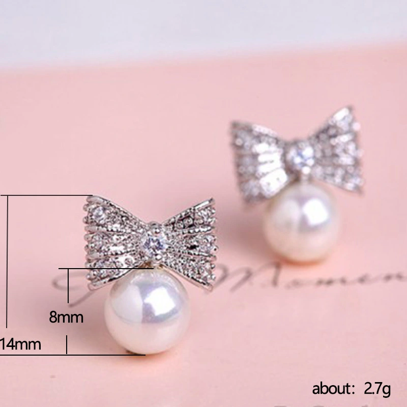 brincos novos estilo japonês e coreano brincos de pérolas de imitação de laço doce brincos de temperamento de celebridades jóias