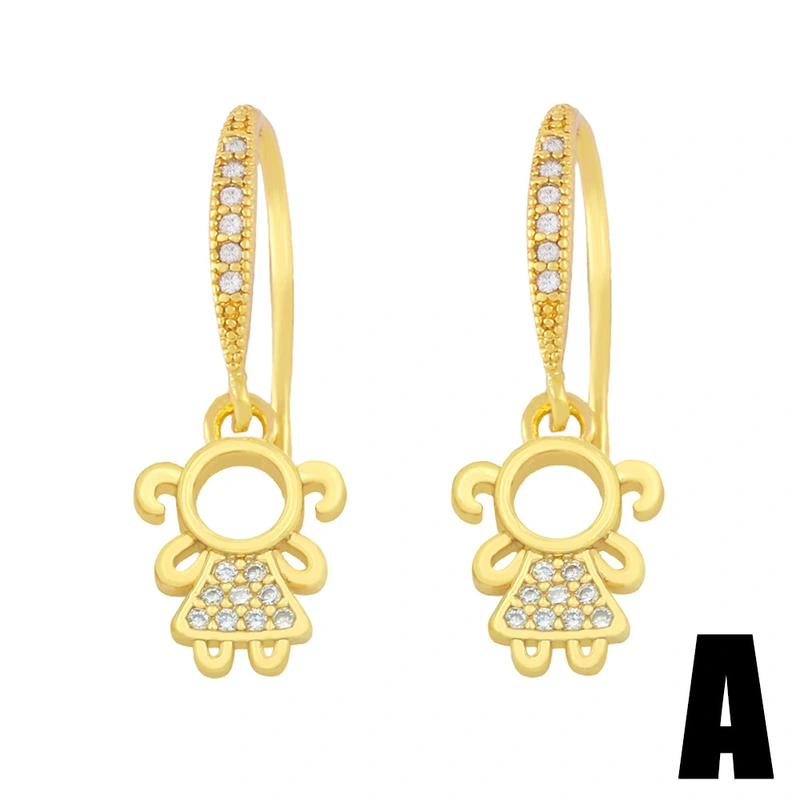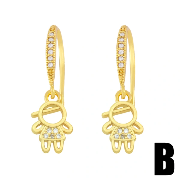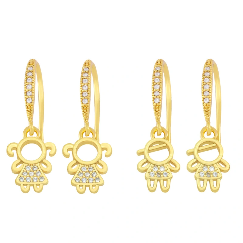 Brincos pequenos e fofos de desenho animado para meninos e meninas, brincos femininos de zircônia, ganchos para orelha, brincos para casais de namoradas ery33