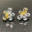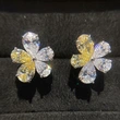 brincos japoneses e coreanos em forma de coração, brincos microincrustados de girassol e girassol bicolor, brincos elegantes de design oco