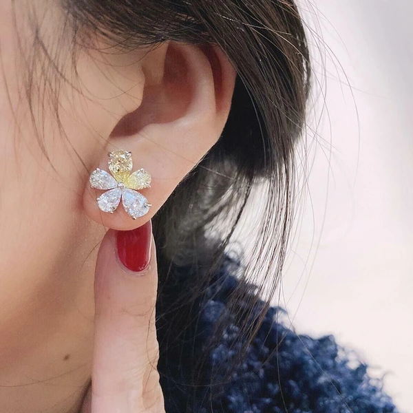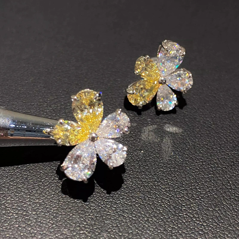 brincos personalizados de flores amarelas e brancas, brincos de luxo leves coreanos versáteis para o dia a dia, brincos florais de duas cores em formato de lágrima