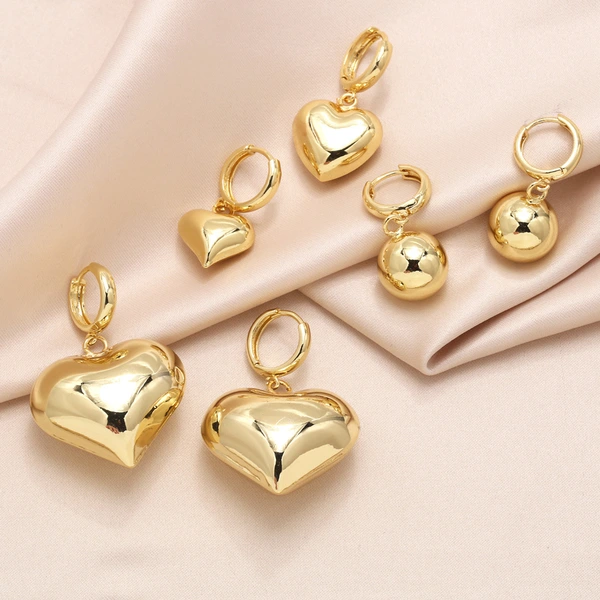 Brincos pingentes de amor simples europeus e americanos, personalidade feminina, criativos, versáteis, banhados a ouro erv98