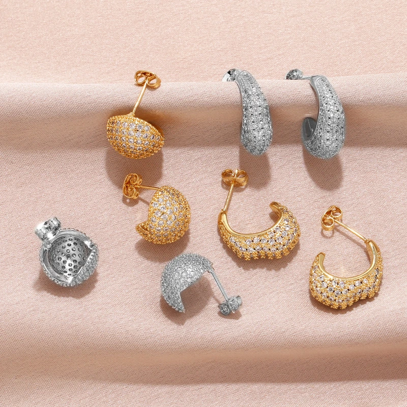 Brincos coreanos elegantes de temperamento antigo, misture e combine brincos ovais com microincrustações de zircónias brilhantes, vendas diretas da fábrica