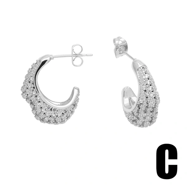 Brincos de alta qualidade para serviços pesados, totalmente incrustados, luxuosos brincos de coração em forma de C, brincos de moda europeus e americanos