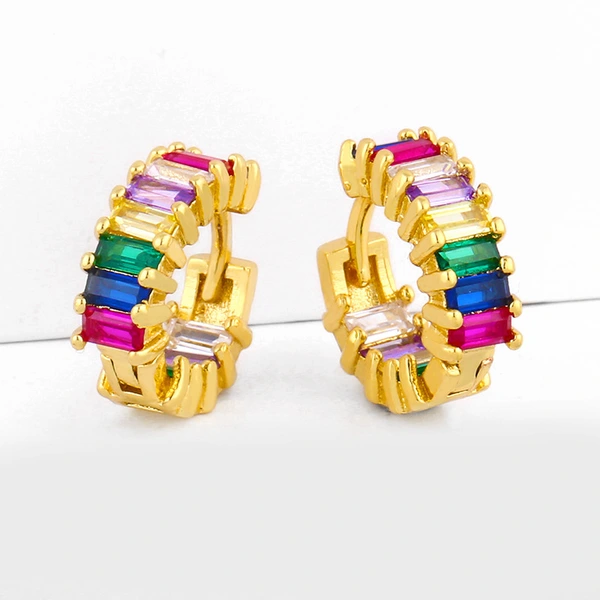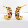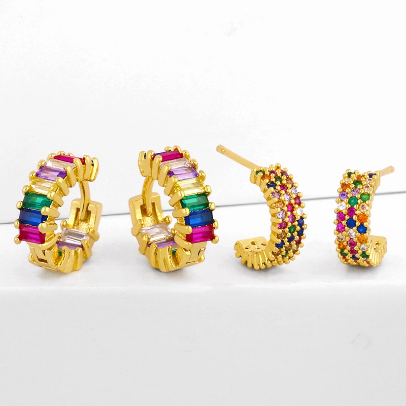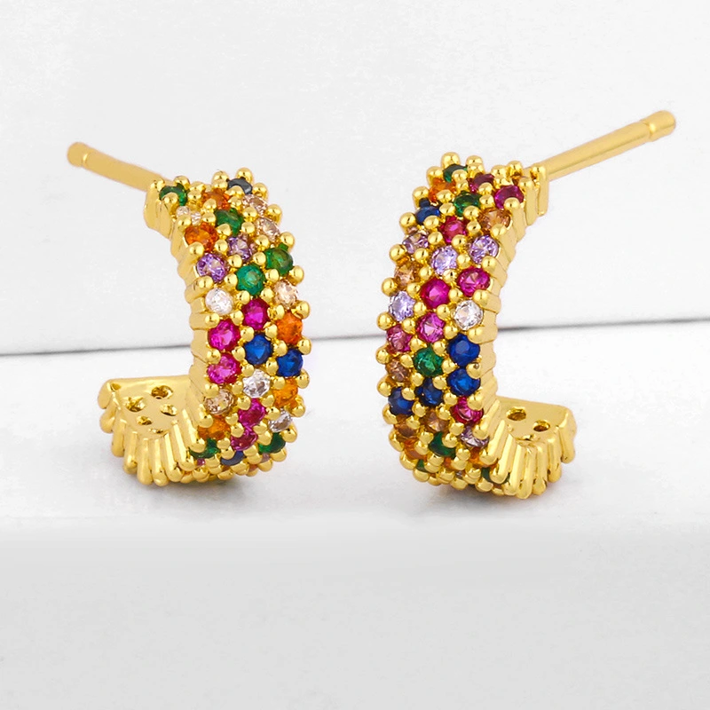 Brincos redondos de zircônia colorida criativa em liquidação, brincos geométricos em formato de C, brincos de zircônia colorida microincrustada em cobre galvanizado ers92