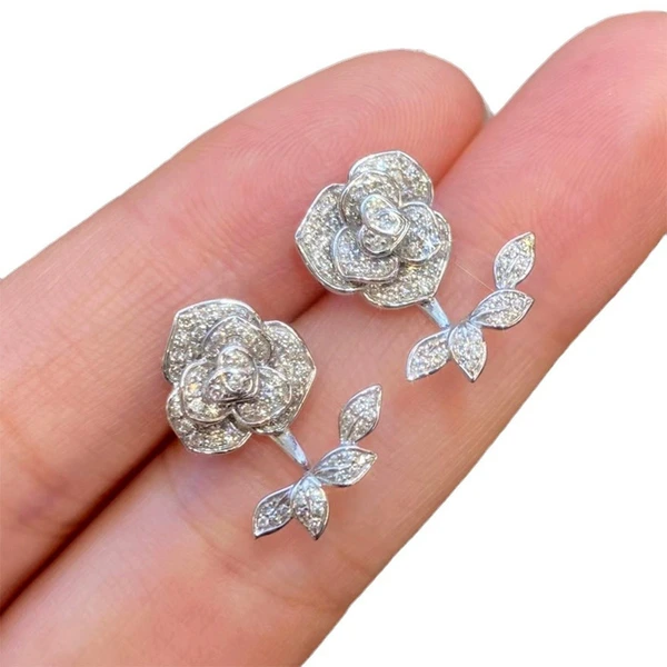 brincos requintados de flores e folhas, elegantes e brilhantes, incrustados com zircónias, estilo popular para uso diário
