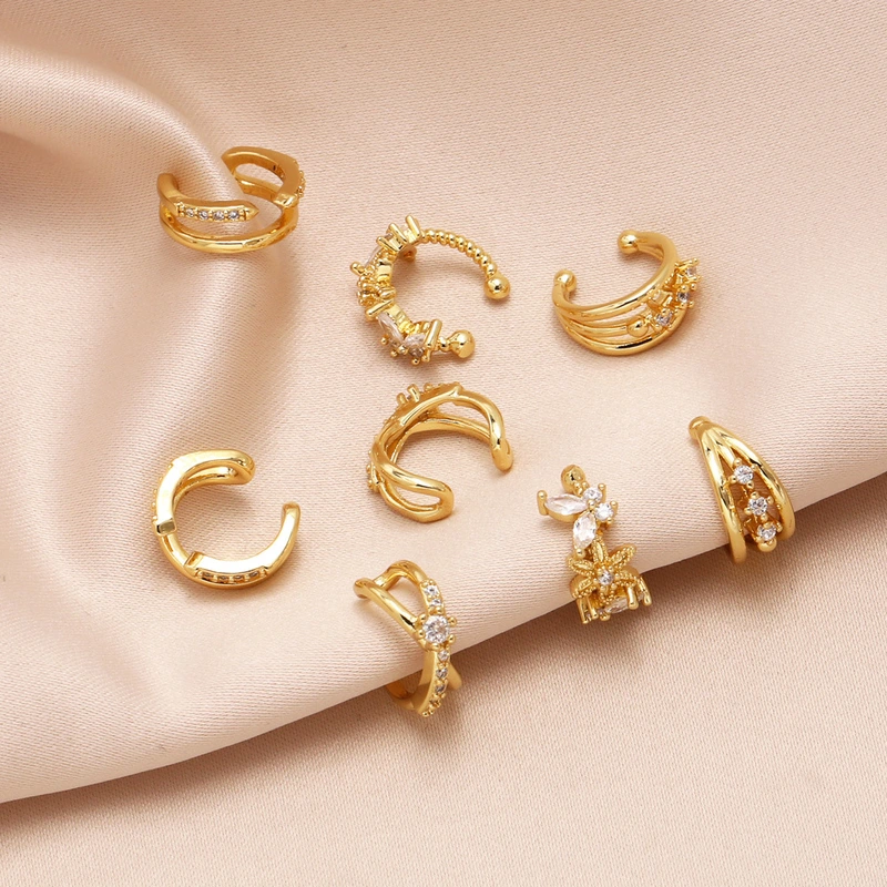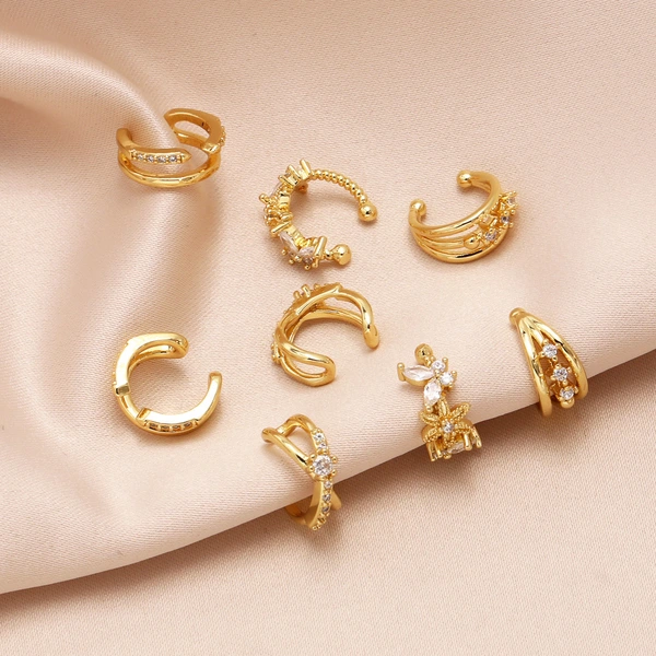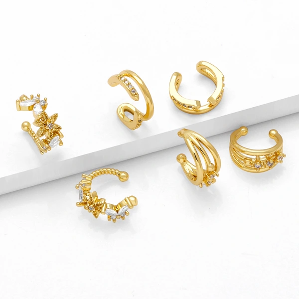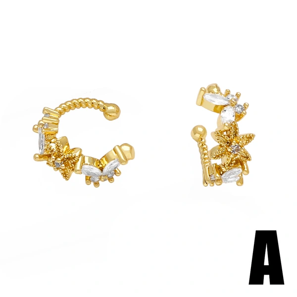 brincos sem furos, simples e modernos, de estilo moderno, para mulheres, versáteis e incrustados com zircônia e clipes de orelha de borboleta banhados a ouro era081
