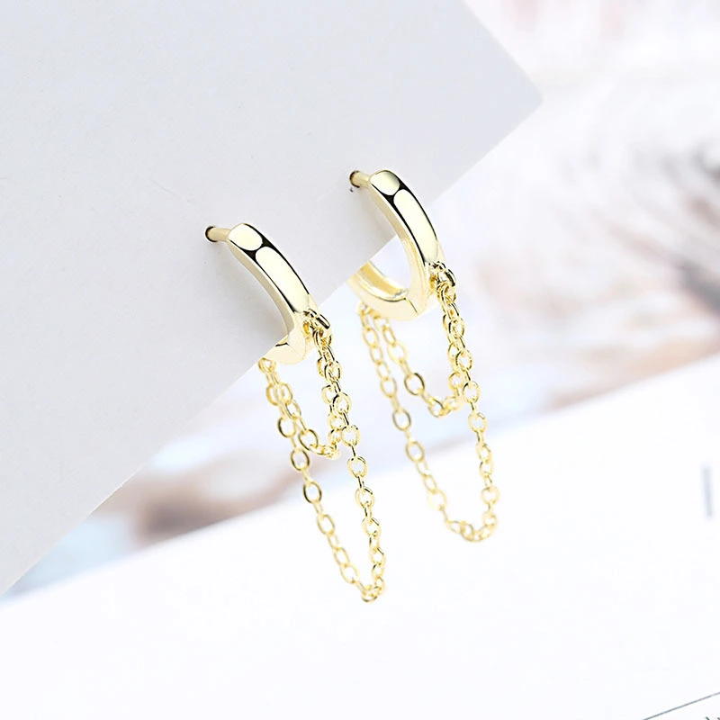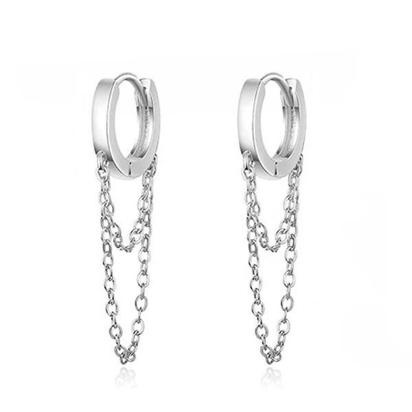 brincos simples com pendente de borla longa, brincos de corrente de dupla camada em círculo da moda, brincos de menina estilo cool e doce