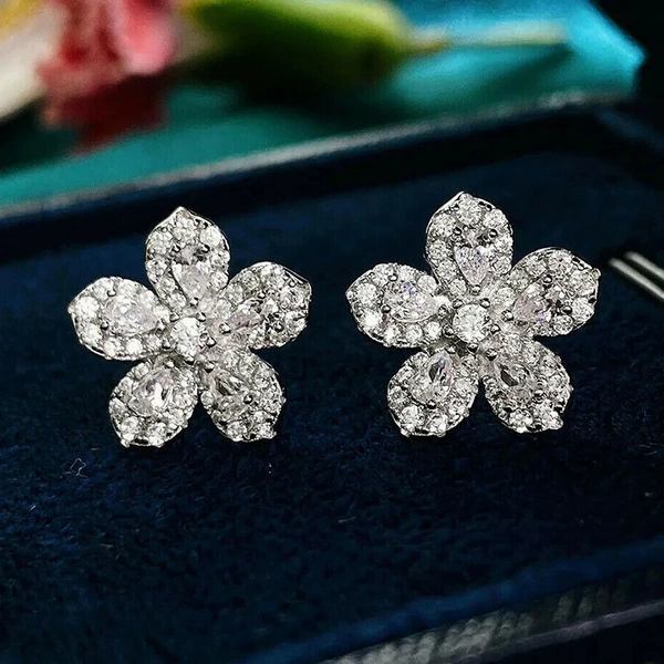 Brincos simples de estilo coreano com zircónias e diamantes microincrustados, flor de trevo da sorte, pequenos brincos requintados de temperamento