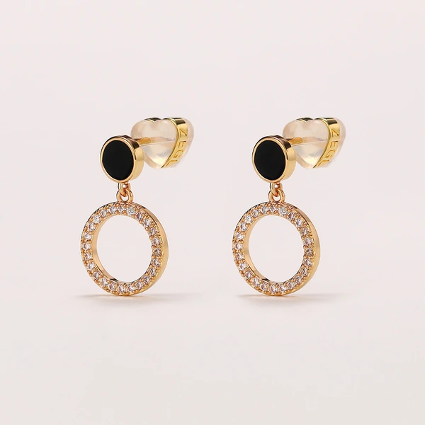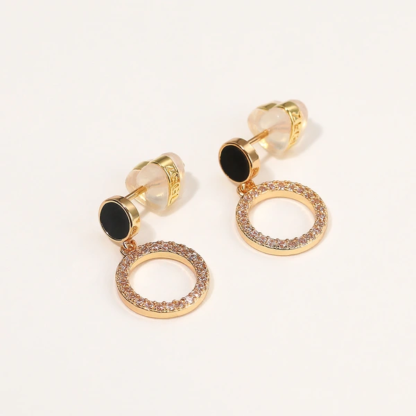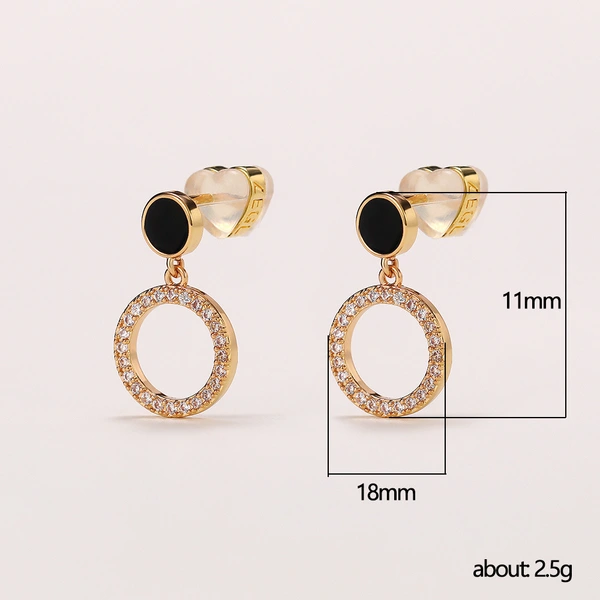 Brincos simples de moda coreana, brincos de disco preto geométricos com círculo oco para mulher, brincos de zircónia microincrustada