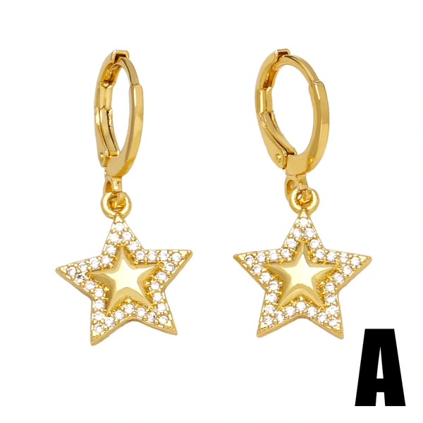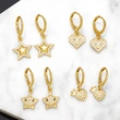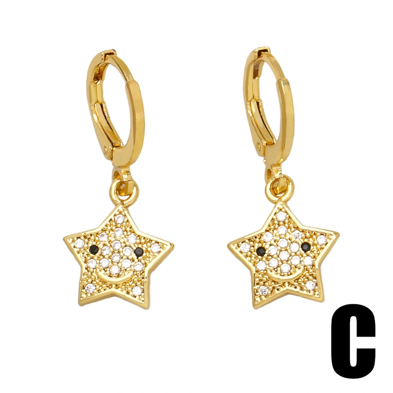 Brincos simples e fofos de estrela com rosto sorridente, personalidade da moda europeia e americana, brincos de estrela de cinco pontas em formato de coração e pêssego ert91