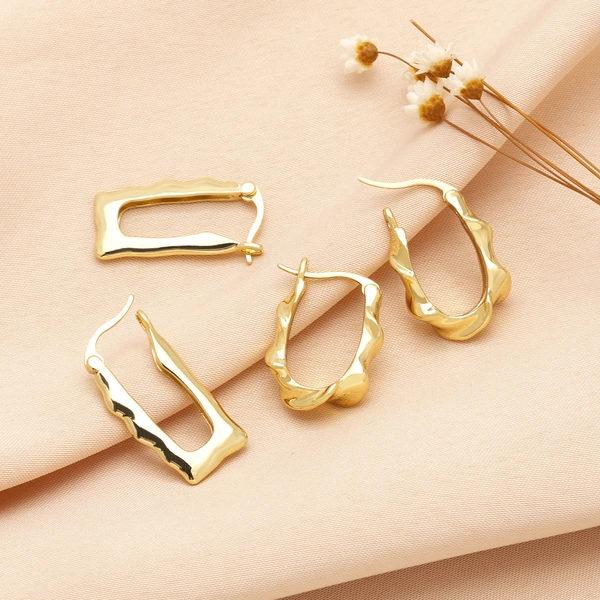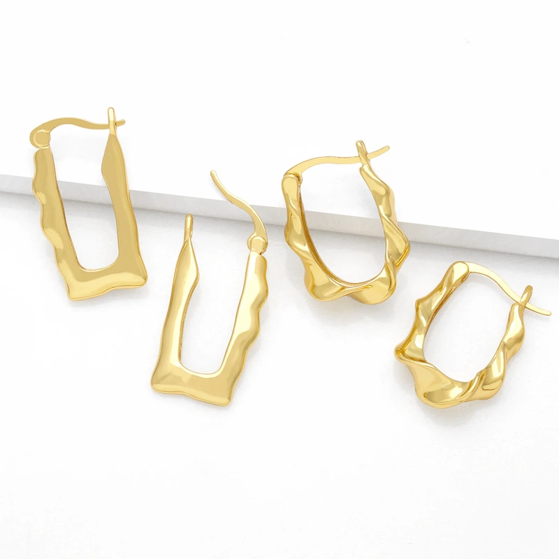 Brincos vazados de moda europeia e americana, brincos femininos criativos, geométricos e banhados a ouro erv67