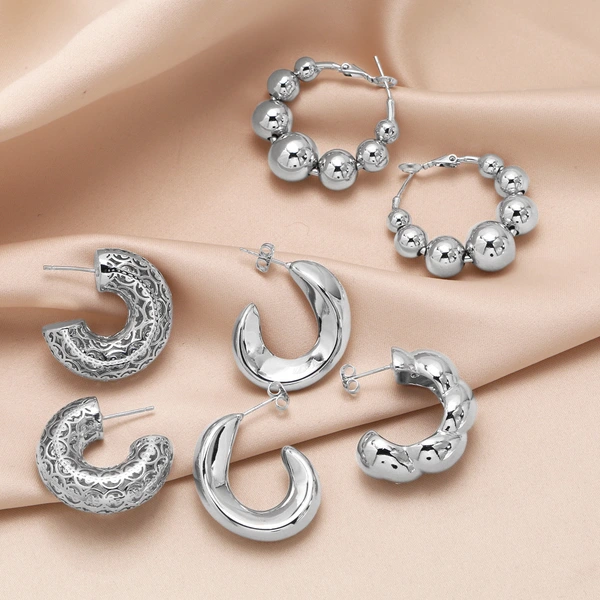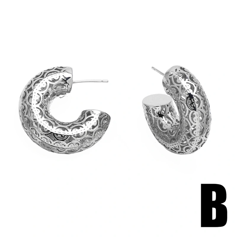 Brincos vazados simples europeus e americanos, design de nicho feminino, brincos retrô em forma de C avançados, brincos erz27