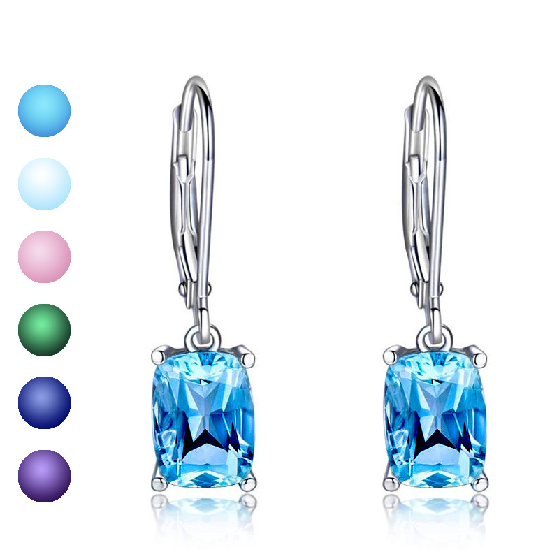 Novos brincos de imitação de topázio azul para mulheres, brincos de zircônia simples, joias europeias e americanas no atacado