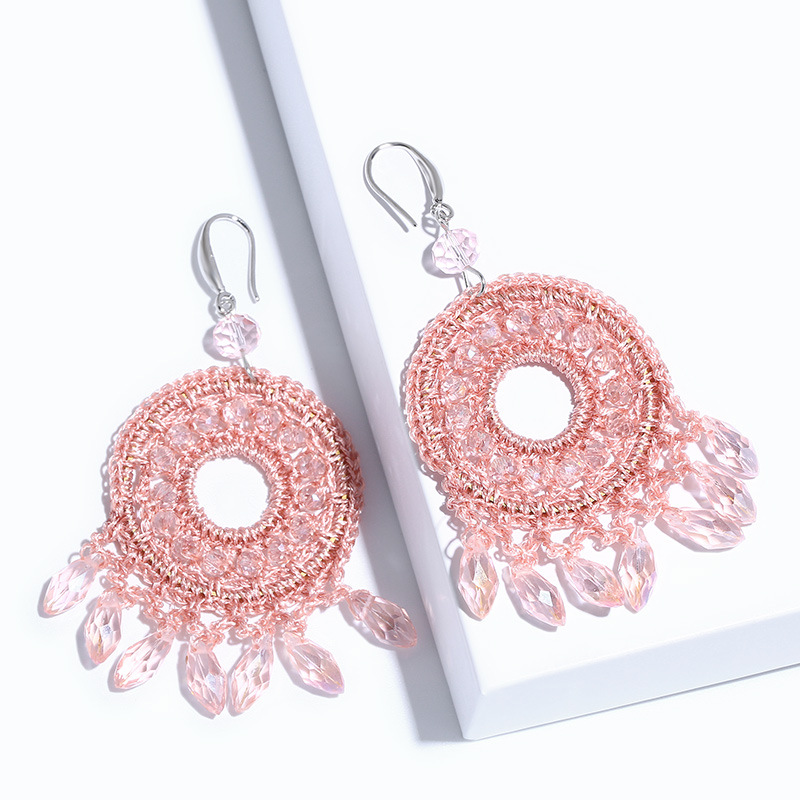 Brincos femininos estilo boêmio geométricos redondos com miçangas tecidas à mão em liquidação ern81