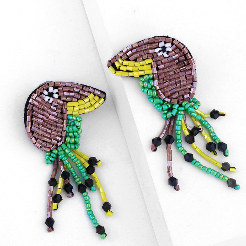 Liquidação de joias europeias e americanas, brincos exagerados de contas de arroz, borla de papagaio, personalidade feminina, brincos de tendência animal, atacado err81