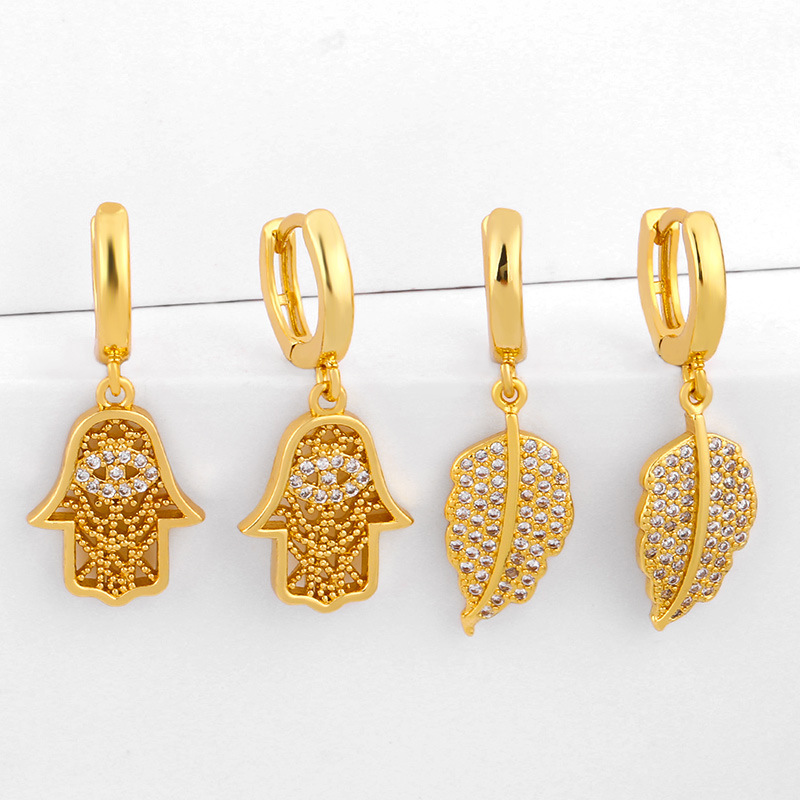 brincos criativos europeus e americanos da moda brincos de palma exóticos brincos femininos de cobre micro-incrustados zircões coloridos ers70