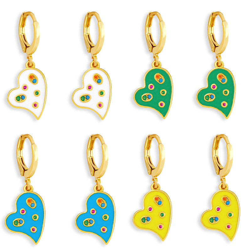 Brincos em formato de coração com desconto, brincos de zircônia incrustada em óleo, brincos europeus e americanos, brincos de amor femininos erx51