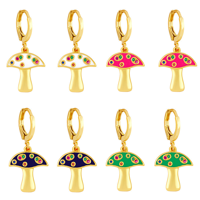 liquidação como joias europeias e americanas brincos fofos de cogumelo florestal brincos de cogumelo com gota de óleo de zircônia colorida erx50