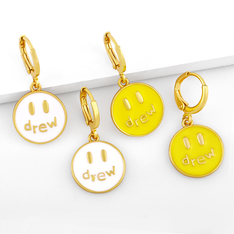 Brincos europeus e americanos fofos com sorriso, brincos redondos com gotas de óleo e cor doce erx28
