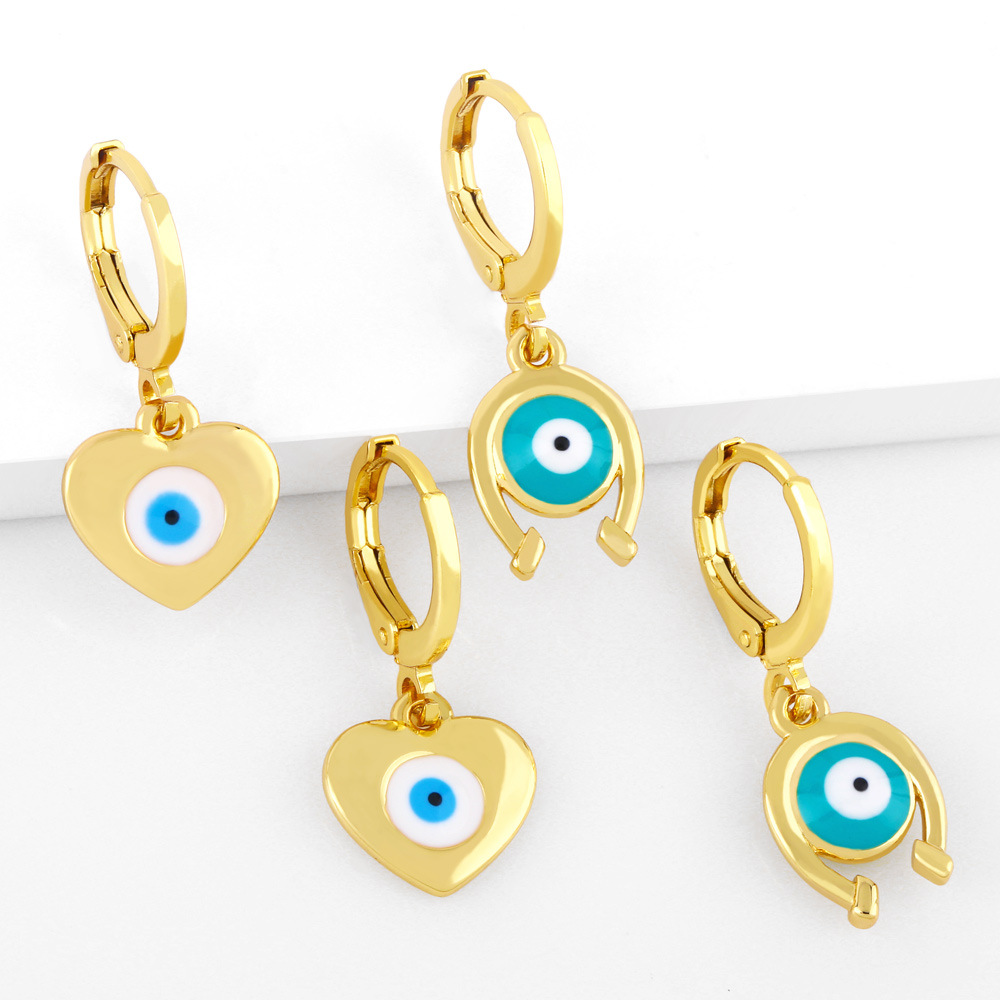 brincos de olho europeus e americanos banhados a ouro com gotas de óleo, brincos de olho de diabo atacado ery39