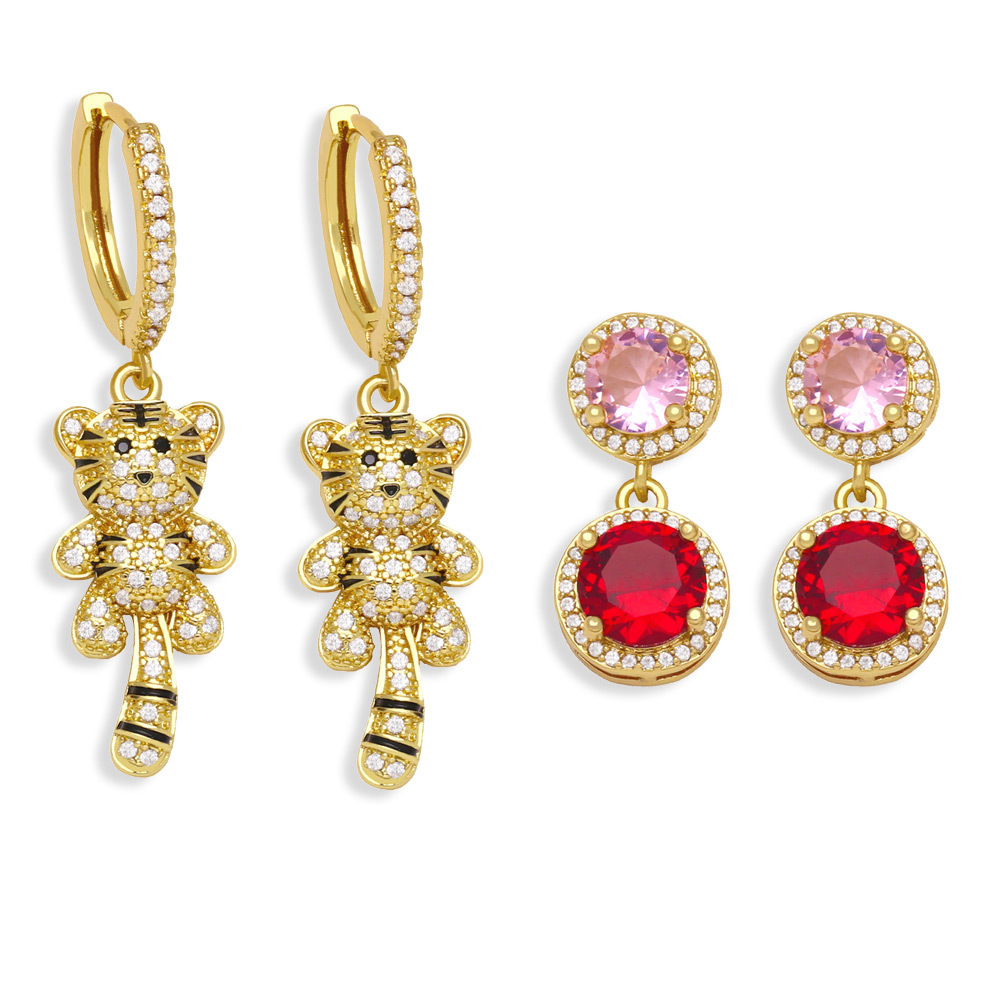 Brincos do zodíaco do ano do tigre, brincos de personalidade em forma de tigre, brincos femininos de temperamento leve e luxuosos de alta qualidade erz46