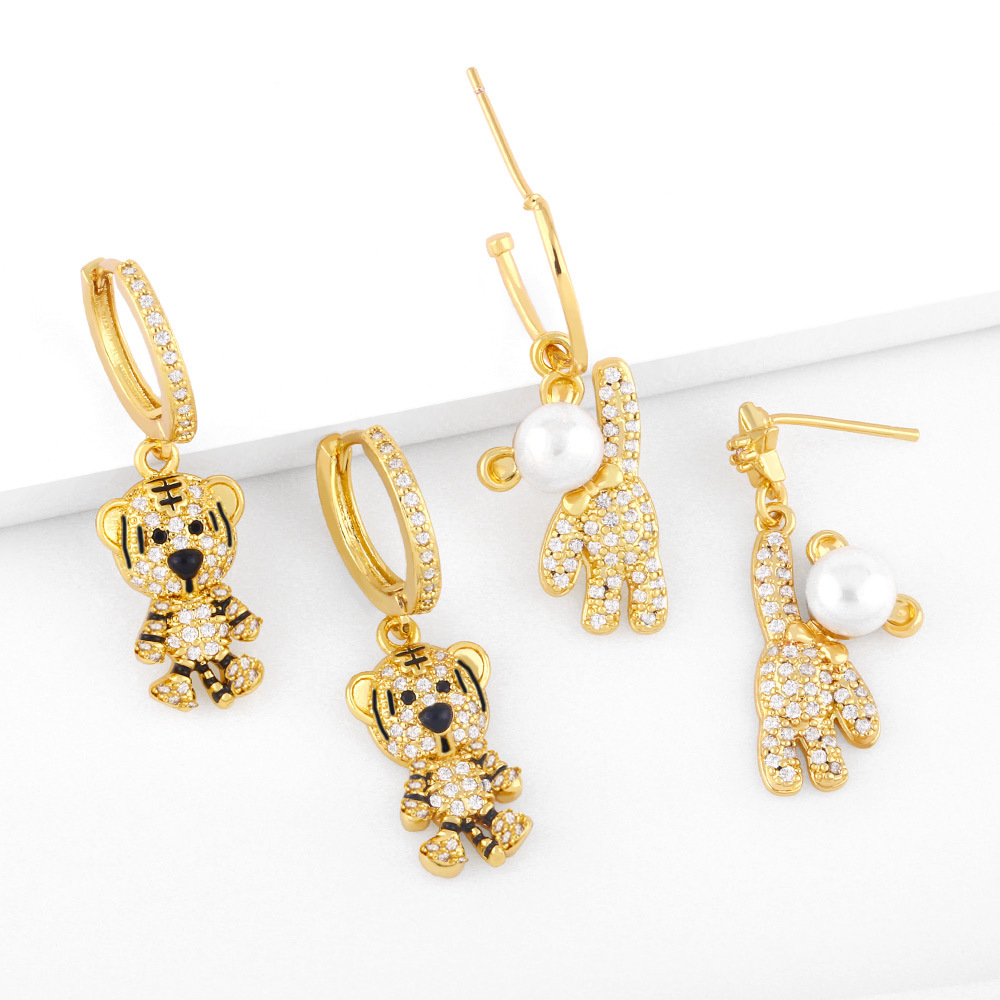 Brincos assimétricos de urso com estampa de estrelas, estilo europeu e americano, modernos, leves e luxuosos, com zircônias e pérolas, atacado, erz56