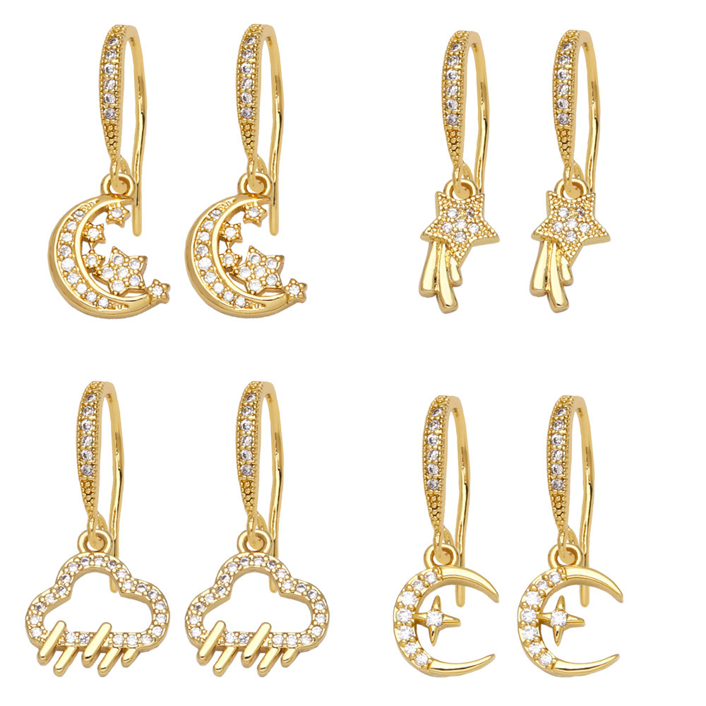 Brincos de design de nicho com temperamento feminino, brincos de personalidade europeia e americana, estrela, lua, nuvem, gancho de orelha erz37