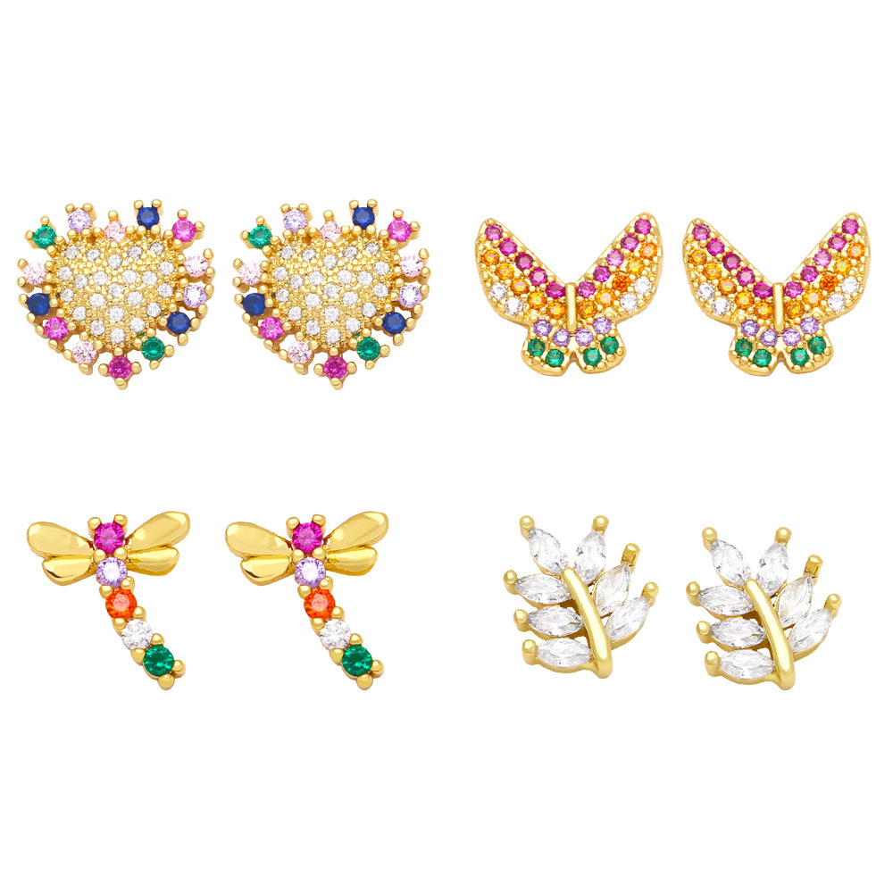 Brincos de liquidação mais vendidos, brincos fofos de borboleta, libélula, cor de coração, zircônio, brincos europeus e americanos, brincos femininos ery94