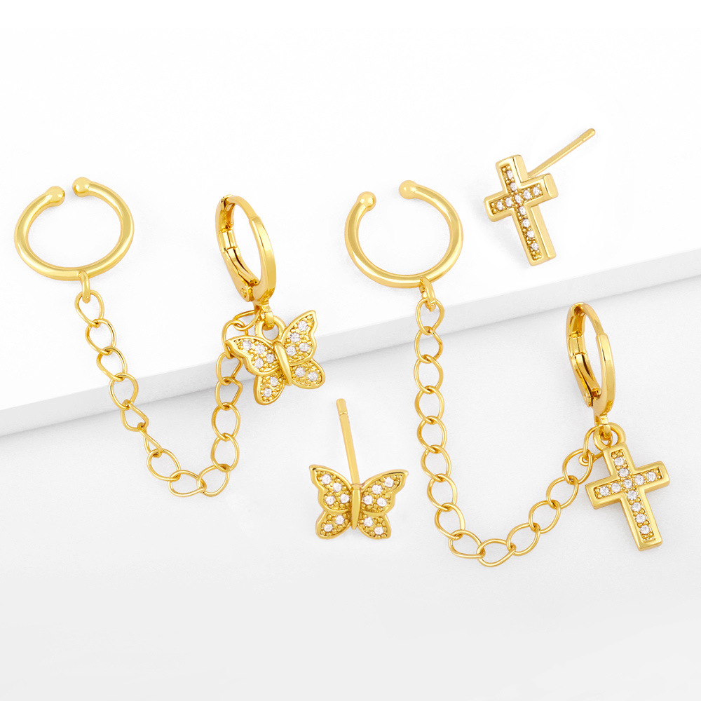 Brincos de borboleta assimétricos com desconto para mulheres, brincos de personalidade europeia e americana, brincos de clipe de orelha, brincos de borla exclusivos ery74