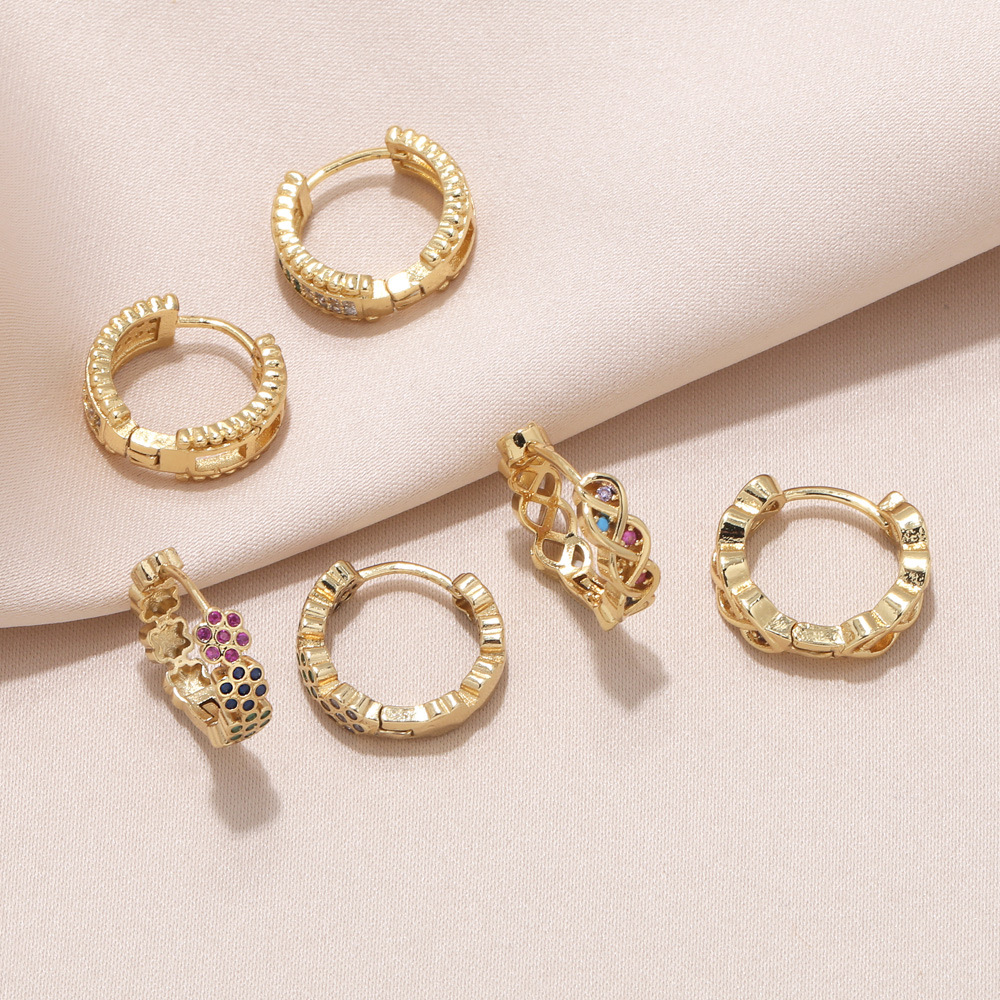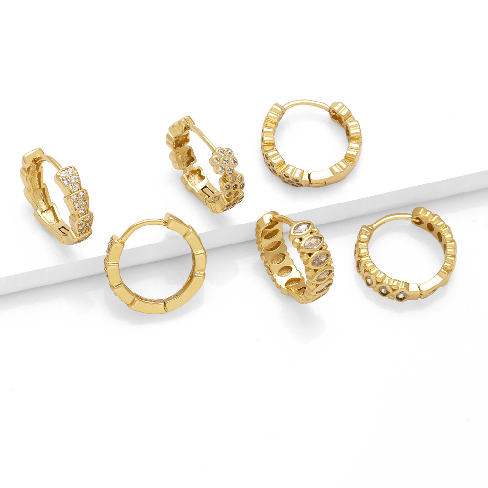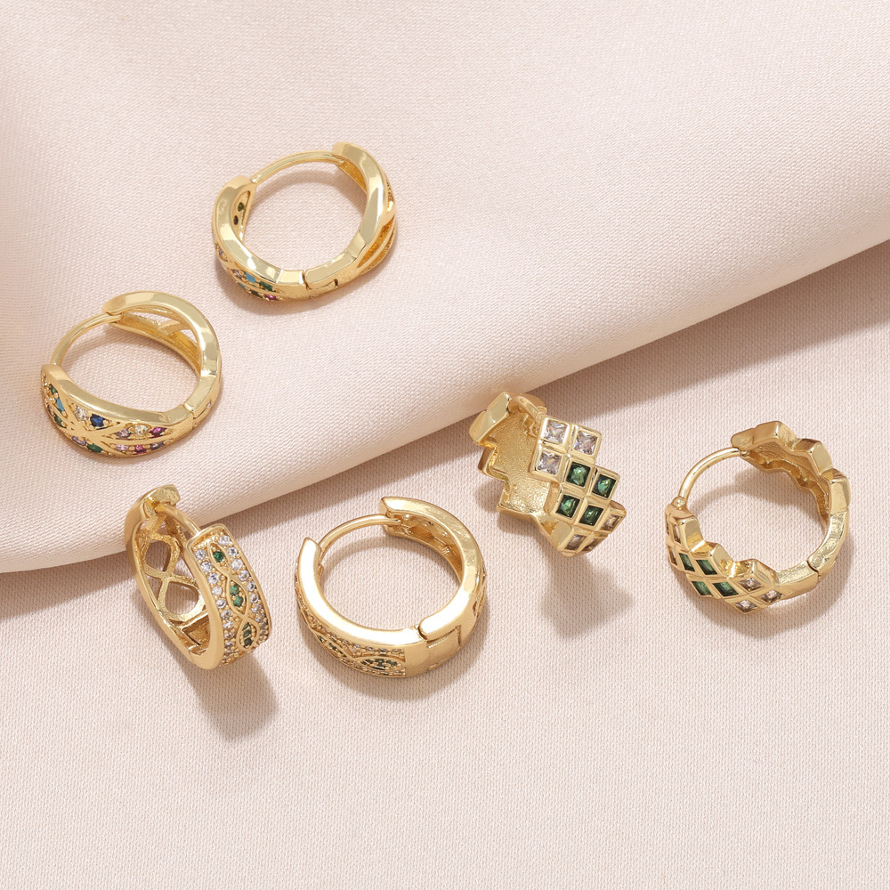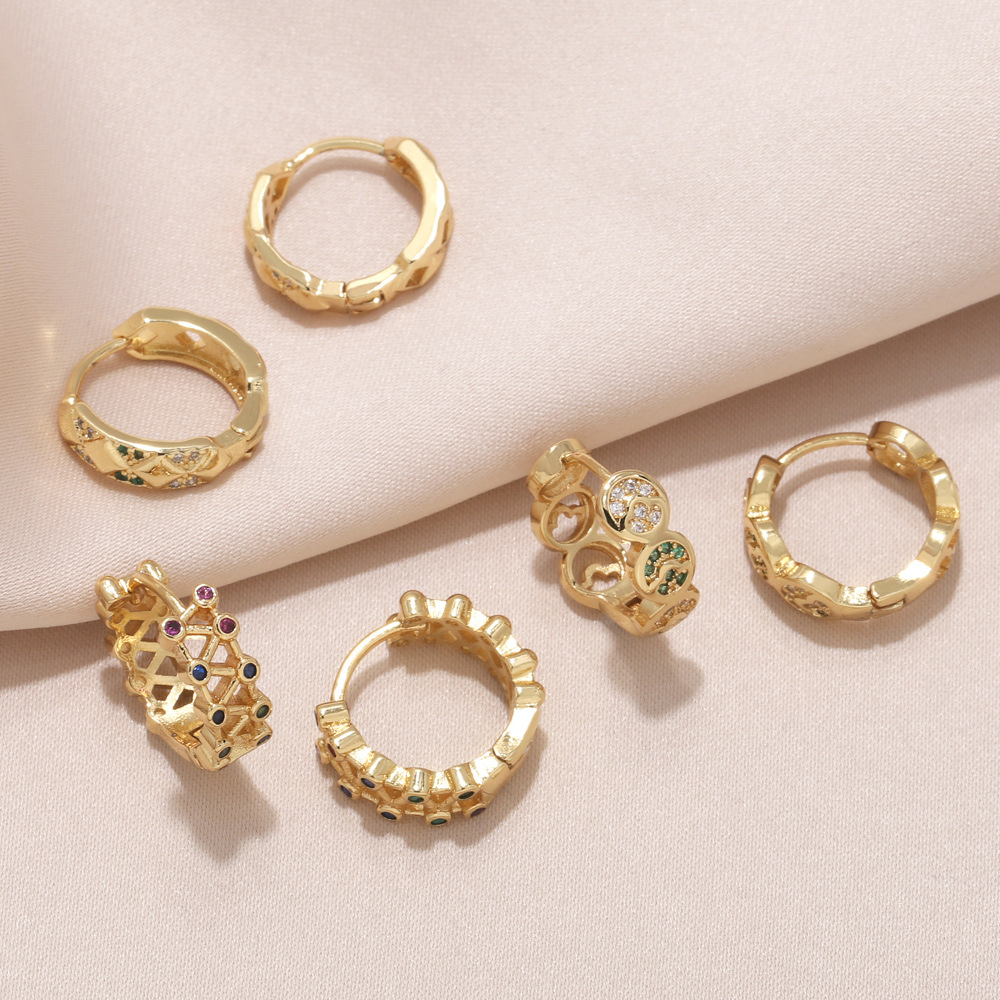 Brincos de zircônia de cor simples e estilosa, femininos, europeus e americanos, todos os tipos de brincos redondos banhados a ouro, erw51