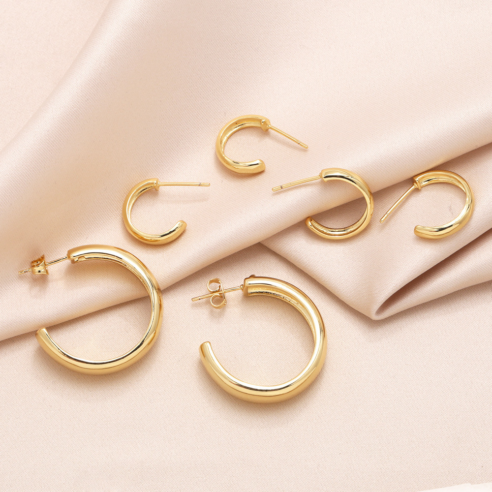 Brincos vazados em formato de C europeus e americanos, brincos de nicho femininos, leves, luxuosos e sofisticados, banhados a ouro, joias ery41