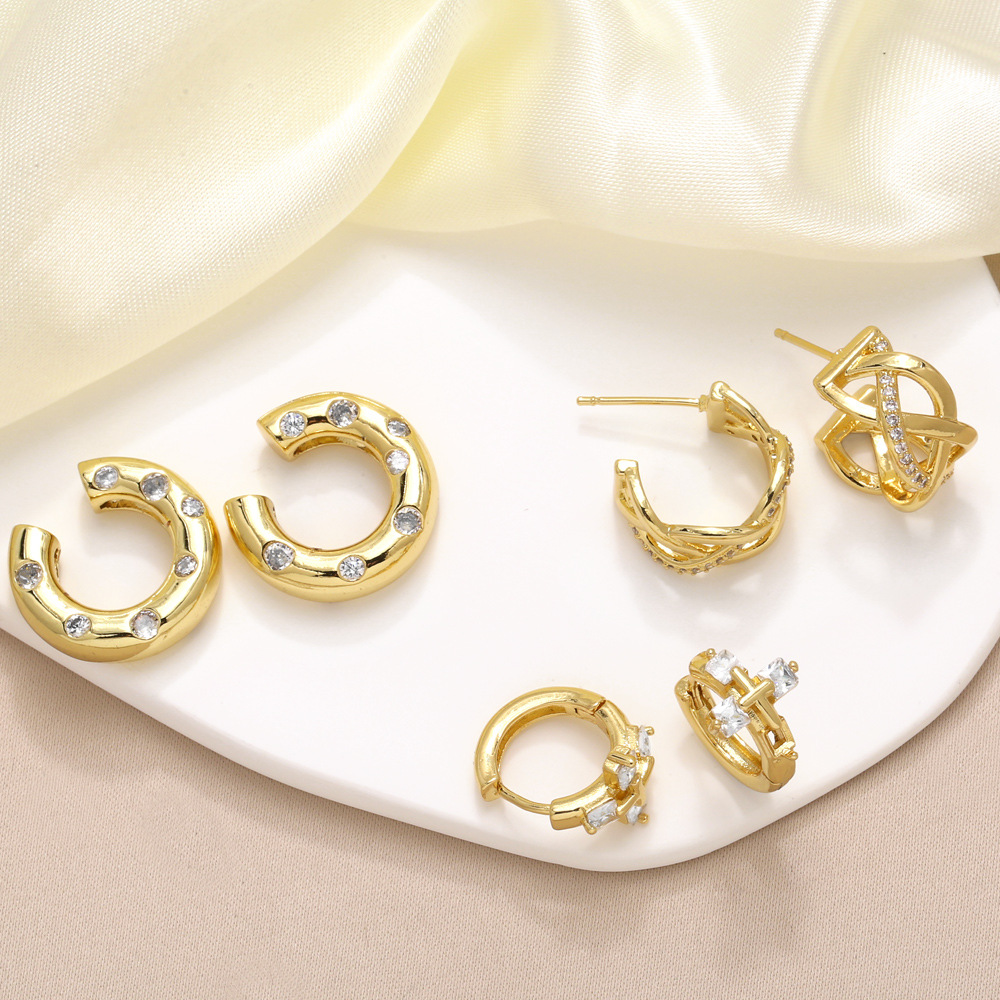 como brincos de joias em forma de C mais vendidos para mulheres com incrustações de zircônias banhadas a ouro brincos geométricos erz26