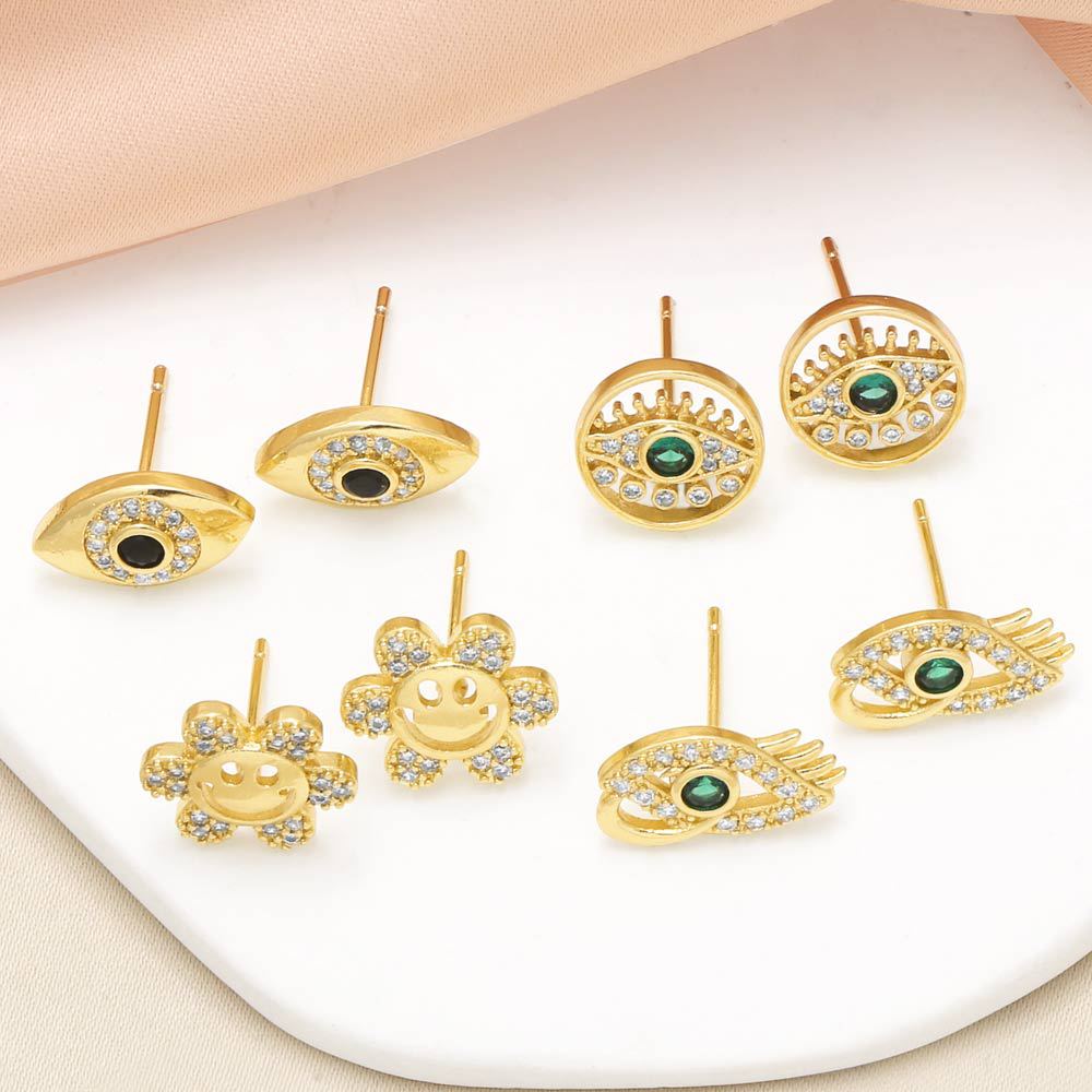 como joias mais vendidas brincos de girassol sorriso brincos femininos banhados a ouro zircônia olho era370