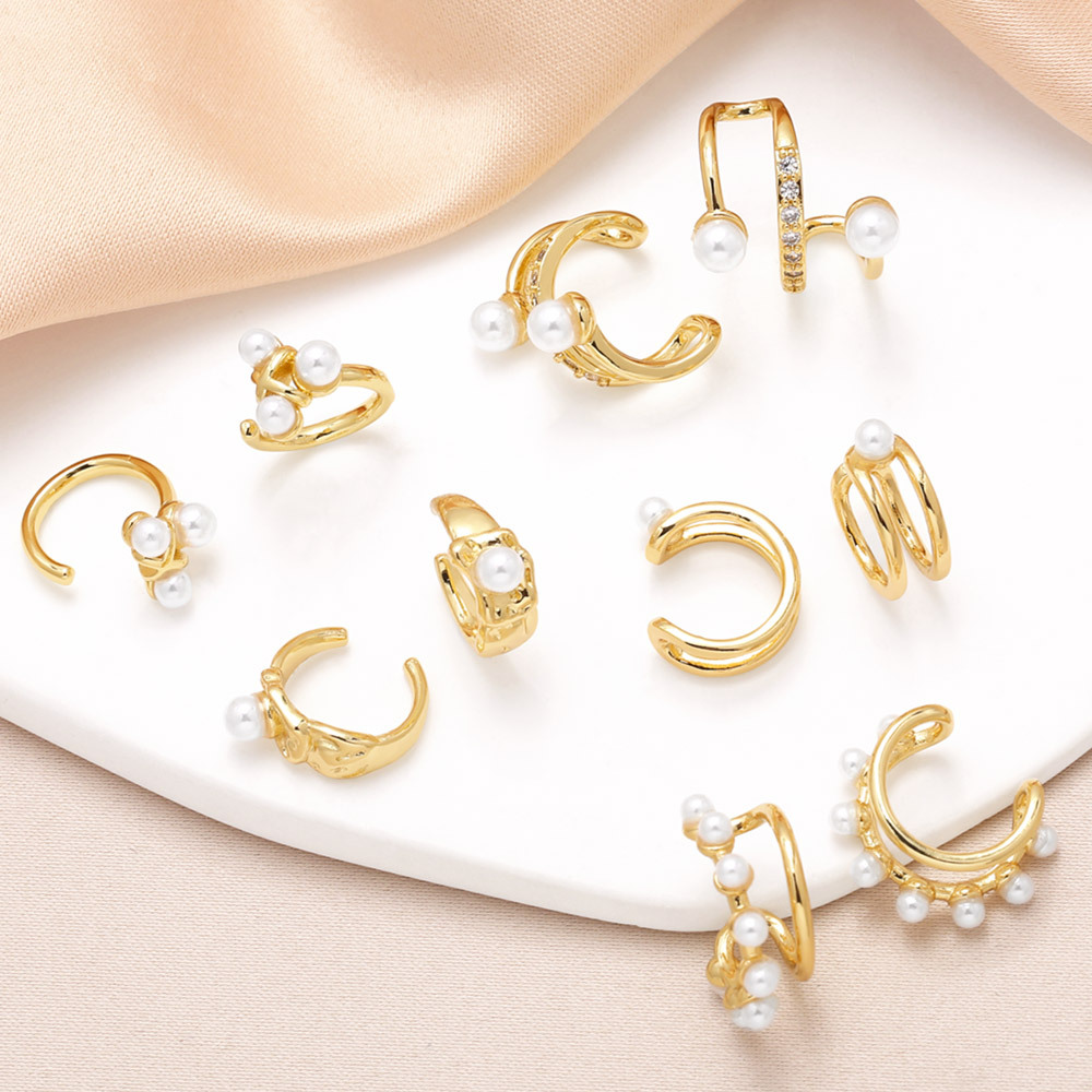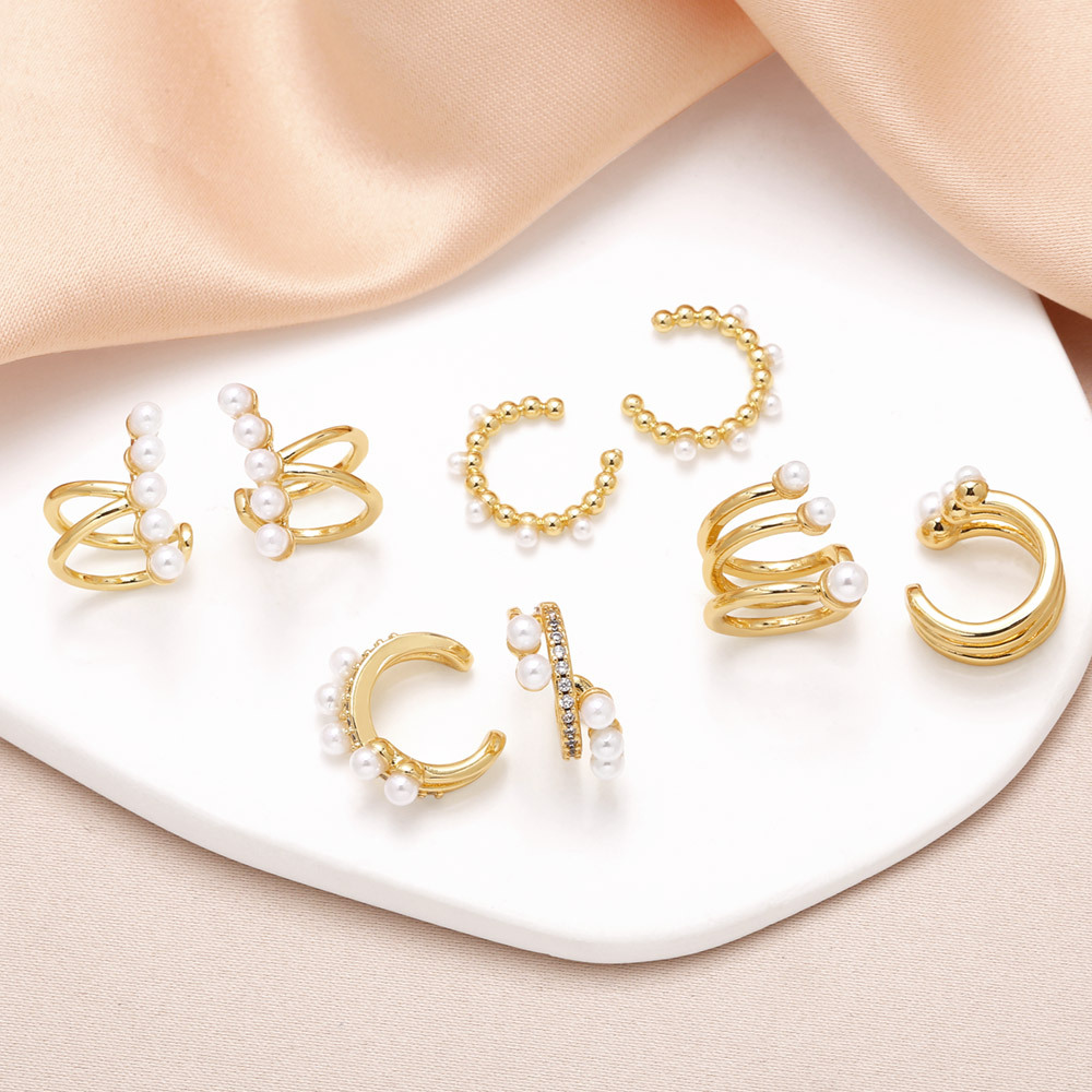 como joias brincos de pérolas para mulheres banhados a cobre 18k ouro incrustado zircão em forma de c brincos de clipe de osso de orelha era376