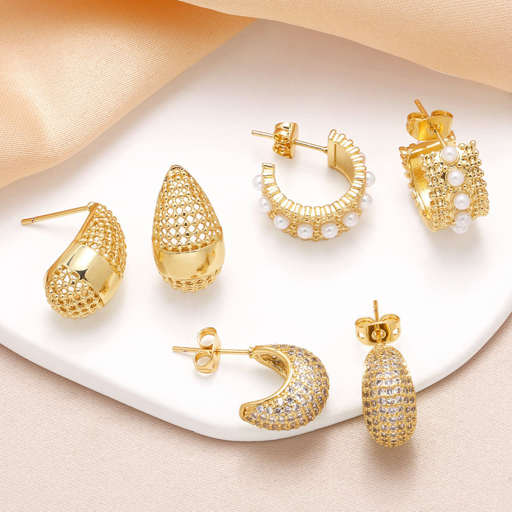 como joias brincos de boca de chão em forma de lágrima brincos de zircônia banhados a ouro de alta qualidade brincos era362