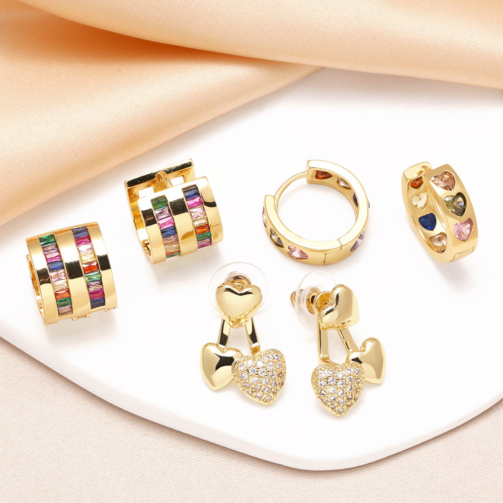 como joias estilo quente brincos de zircônia colorida brincos femininos banhados a ouro brincos com pingente de amor de duas fileiras era389