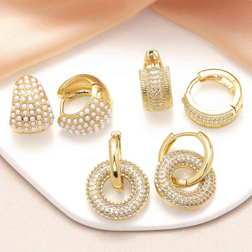 como joias europa e estados unidos brincos de pérolas mais vendidos femininos banhados a cobre ouro verdadeiro brincos redondos cheios de zircônia brincos ers11