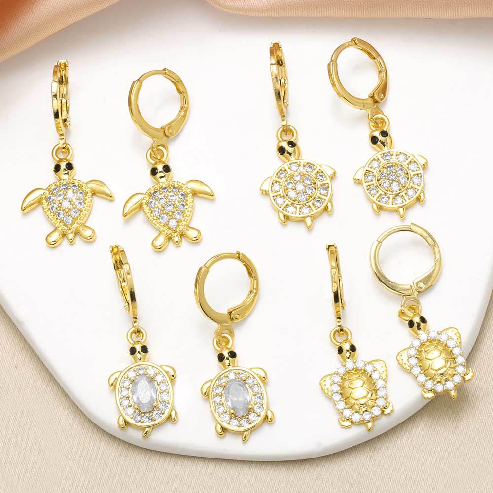 como joias mais vendidas novos brincos pingentes de tartaruga animal femininos banhados a ouro brincos cheios de zircônia era380