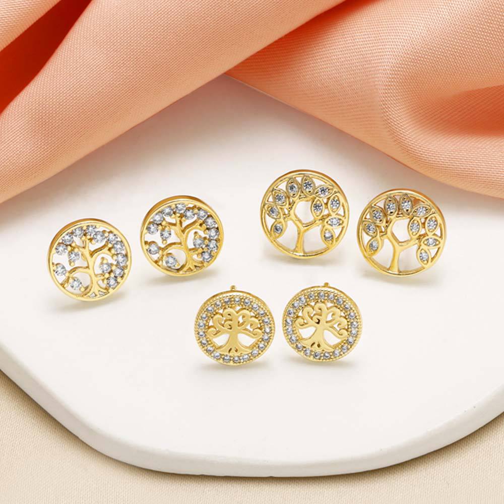 como joias mais vendidas brincos de árvore da vida femininos banhados a cobre brincos redondos versáteis de ouro verdadeiro erw43