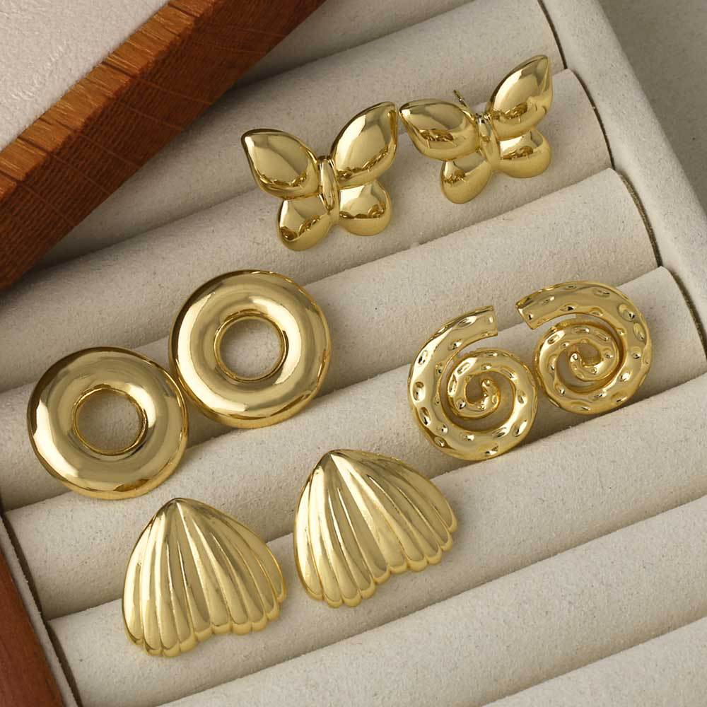 como joias europeias e americanas simples banhadas a cobre 18k ouro polido redondo brincos de borboleta brincos brincos femininos erz85