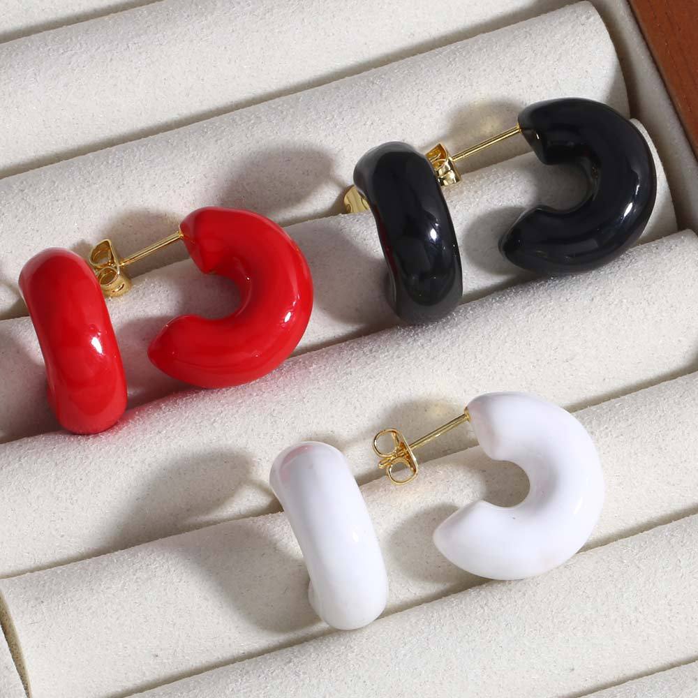 como joias europeias e americanas de nicho simples de alta qualidade banhadas a ouro cor gota de óleo brincos em forma de c brincos erj38