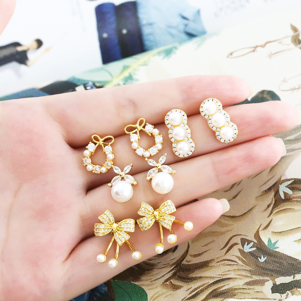 Brincos de pérola estilo joia, moda europeia e americana, todos combinando, banhados a ouro de alta qualidade, sem furos, era128