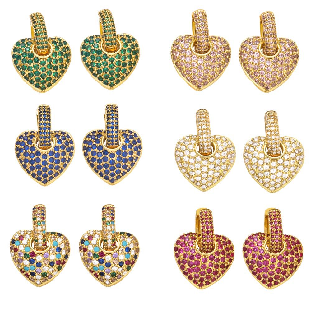 Brincos de coração com zircônias coloridas microincrustadas para mulheres, fivelas de orelha de personalidade retrô, brincos simples em formato de coração europeus e americanos, era030