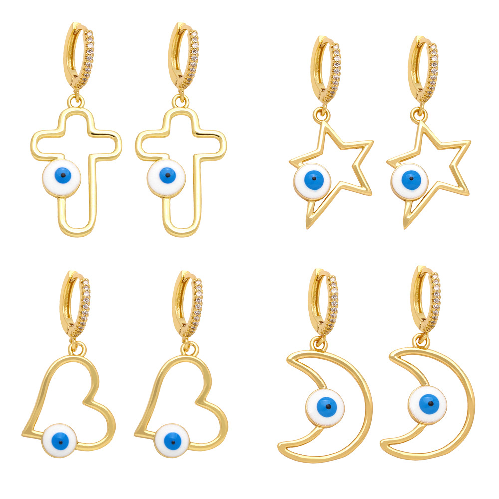 Brincos de olho de diabo em cruz de personalidade estilo europeu e americano, design de nicho feminino, brincos de amor de lua ert61