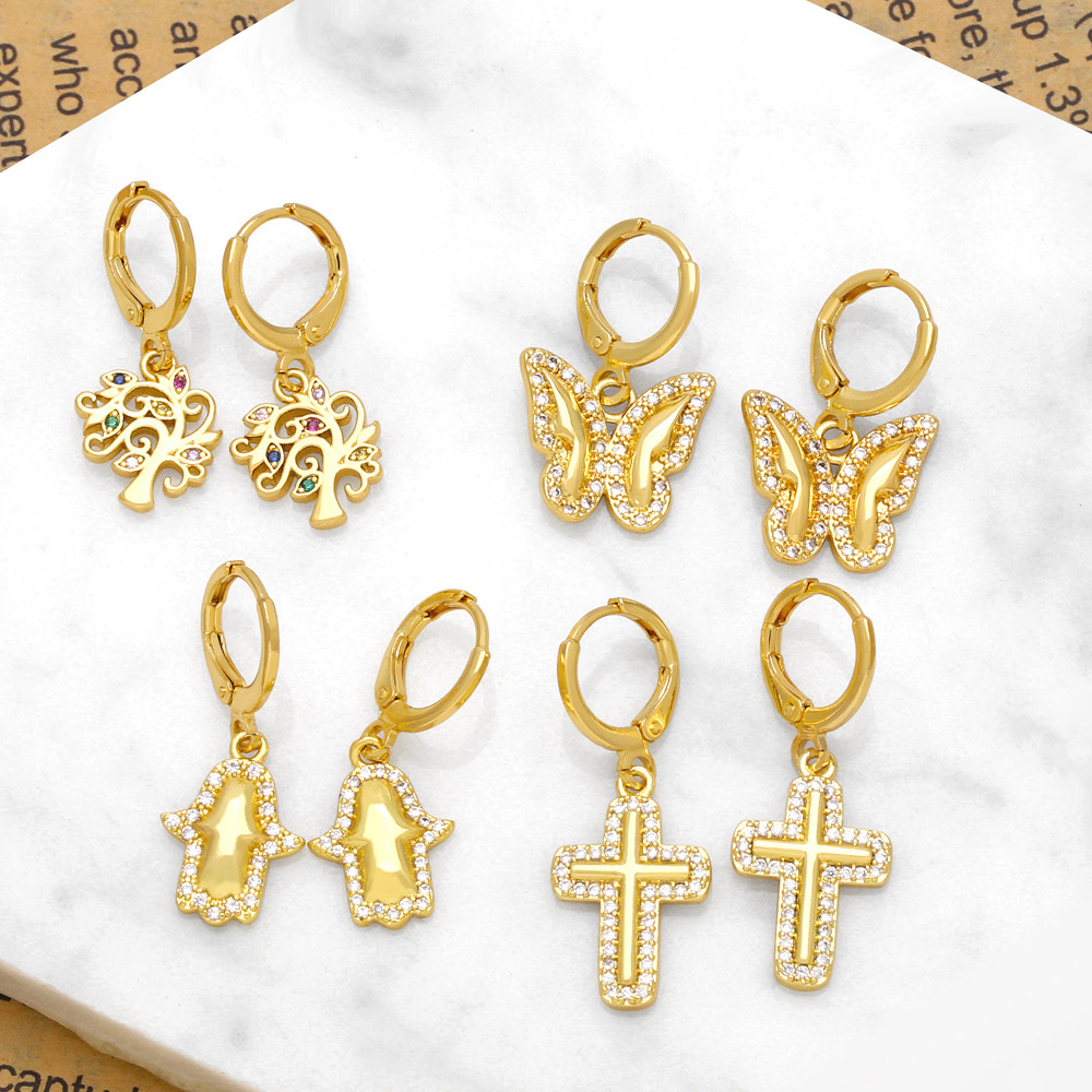 Brincos de borboleta com diamantes e cruz europeus e americanos, novos, design de nicho, brincos combinando ert44