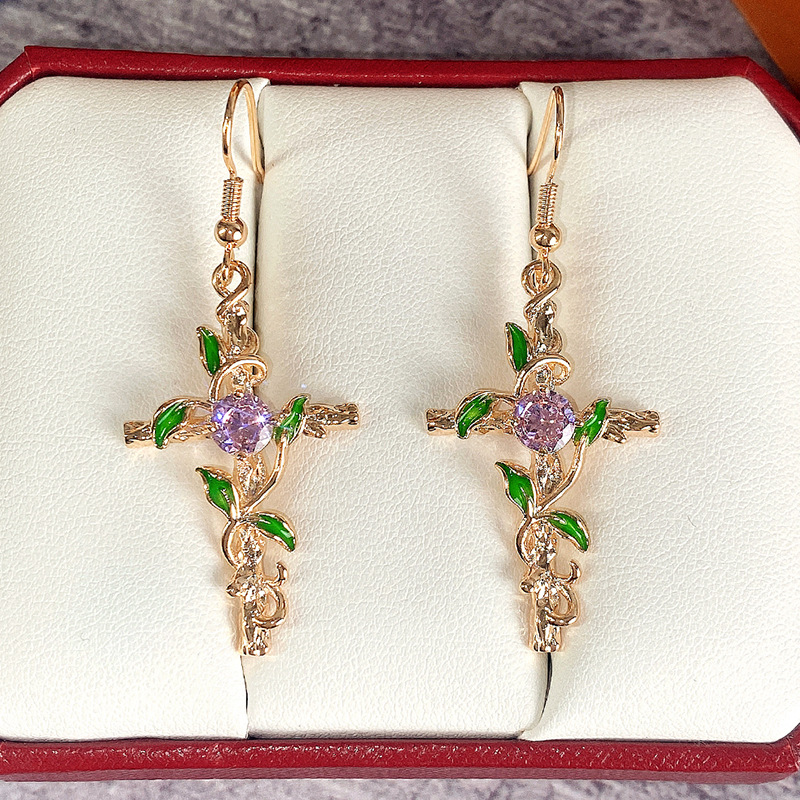Brincos criativos de zircónia com gotas de óleo e envoltos em folhas, fornecedor direto de joias por grosso