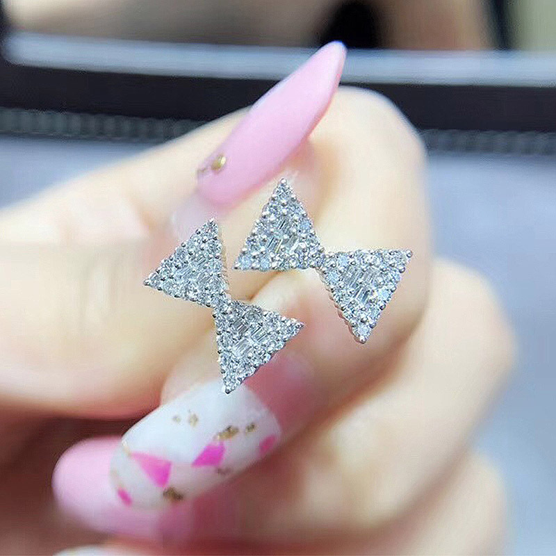 Brincos de coração de zircónia de alta qualidade, brincos de nicho com laço para mulheres, brincos modernos de novo estilo 2022